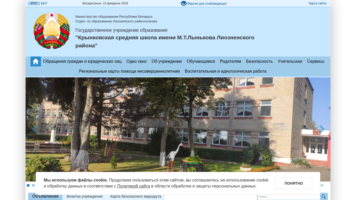 | Название / Заголовок | Крынковская средняя школа им. М.Т. Лынькова Лиозненского района |