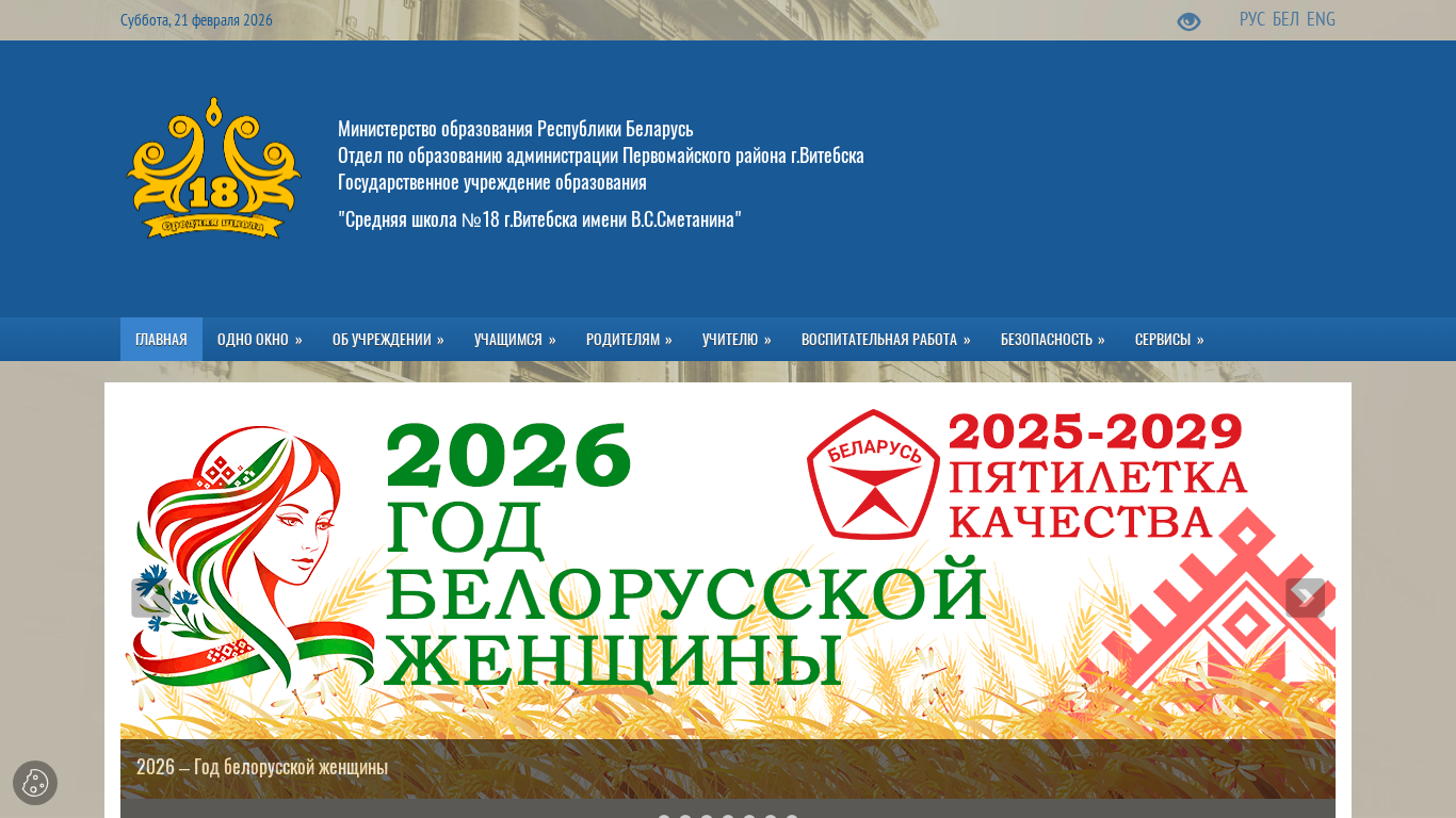 Сайт: sch18.pervroo-vitebsk.gov.by — HTTP 200 (OK) → sch18.pervroo-vitebsk.gov.by