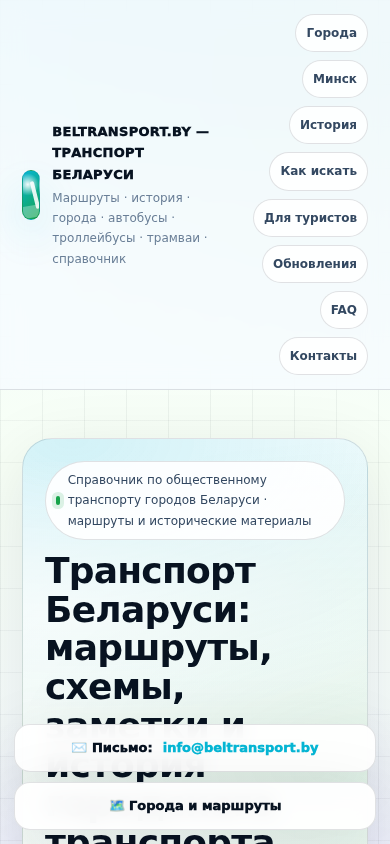 | Название / Заголовок | beltransport.by — Транспорт Беларуси · маршруты и история городского транспорта |