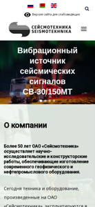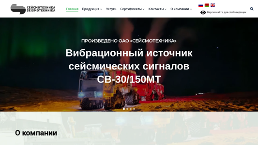 | AI-анализ | The web project "Сейсмотехника" (seismo.by) is a Belarusian business website dedicated to the manufacturing and sales of seismic equipment and geophysical instruments. The company, OAO "Сейсмотехника," has been operating for over 50 years and produces modern equipment for various industries, with notable clients in the CIS region including Gazprom, Turkmengeology, Transneft, and KrAZ Neftegeofizika. The website offers information about the company's history, products, contacts, and news. Major product categories include seismic sources, nefteminesing equipment, and geophysical instruments. The site also features a section for certifications and a system for managing customer inquiries. The company's address and contact information are provided, along with a schedule for meetings with clients and employees. The site is |