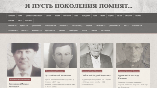 | AI-анализ | This website is dedicated to the memory of veterans of the Soviet Army who fought in the Great Patriotic War. It features biographical information about individual soldiers, including their place of birth, military units, and awards received. Some entries also include the date and location of their death. The website contains posts about various soldiers, such as Vasilevsky Mikhail Antonovich, who was a machine gunner, and Luhtan Nikolay Antonovich, who died in 1945. Other entries mention the places where the soldiers served, such as the 104th infantry regiment. The website's title, "И ПУСТЬ ПОКОЛЕНИЯ ПОМНЯТ…," translates to "Let generations remember…" in English. |