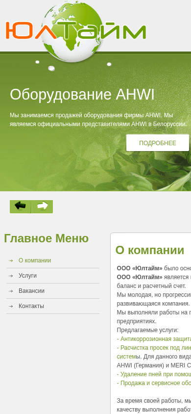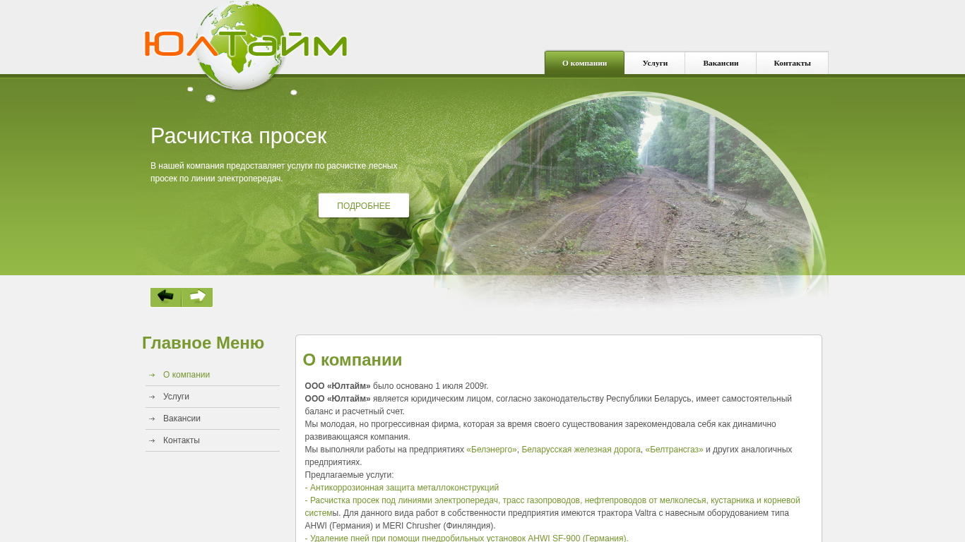 SEO-описаниеЮлтайм - антикоррозионная защита металлоконструкций; расчистка просек под линиями электропередач, трасс газопроводов, нефтепроводов от мелколесья, кустарника и корневой системы; удаление пней в городских условиях; продажа оборудования фирмы AHWI.