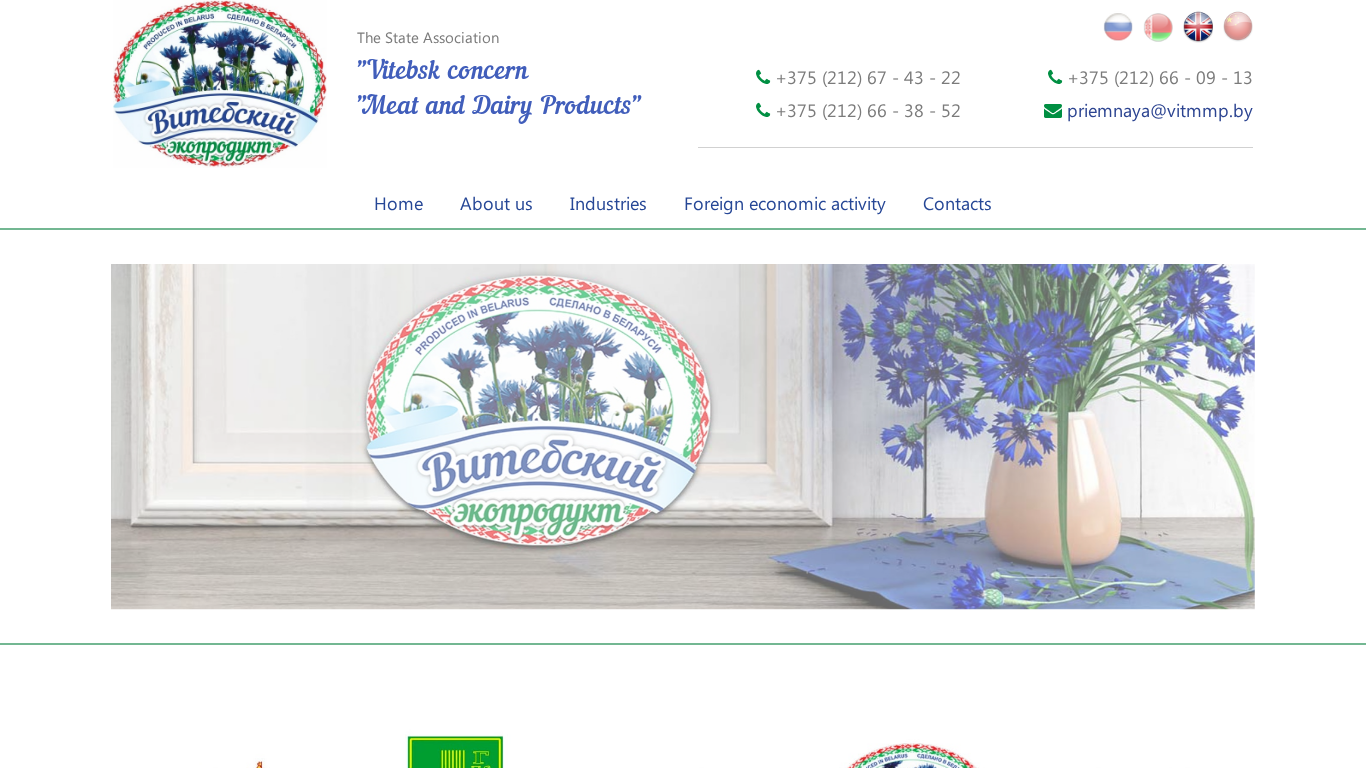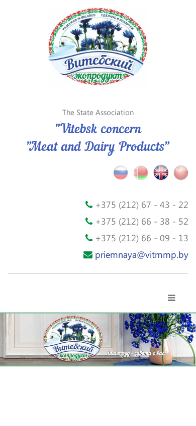 The portal is a website for the State Association "Vitebsk concern "Meat and Dairy Products", which is one of the largest associations in Belarus for meat and dairy, flour and cereals, horticulture, bakery and confectionery products, animal feed, premixes, and canned fish. The association manages and coordinates the activities of various legal entities in these industries. The leading industries and enterprises include the Meat industry with JSC «Vitebsk Meat Processing Plant», JSC «Orsha Meat Cannery», Unitary Enterprise «Miory Meat Processing Plant», and Unitary Enterprise «Glubokoe Meat Processing Plant». The Dairy industry includes JSC «Moloko», Vitebsk JSC «Verkhnedvinsk Dairy», Unitary Enterprise «Verkhny Lug», JSC