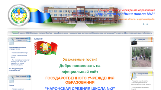 | AI-анализ | --- The portal naroch2.by is the official website of the State Educational Institution "Narochskaya Secondary School No. 2" located in the Minsk region, Miaedelsky district. It provides information about the school, its mission, rules, methodological work, and various educational and extracurricular programs. The website includes sections for parents, students, teachers, and job vacancies. It also features interactive maps, historical information, and resources for informatization and computer education. The school offers different types of camps for children, including day camps "Raduga," "Praleksa," and "Aquarelki," and various educational and sports programs like the "Vulkan" educational and sports complex and the "Olimp" higher education institution. The website emphasizes the importance of military-patriotic education, financial literacy, spiritual and moral education, |