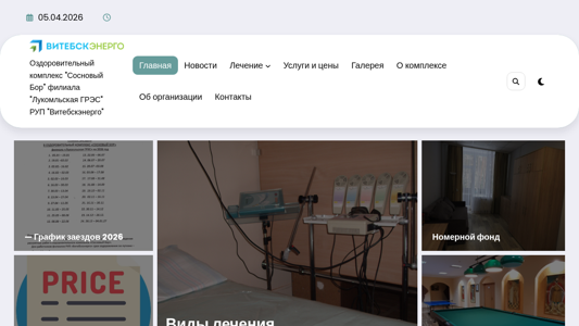 Этот онлайн-ресурс является официальным сайтом для "Сосновый Бор" - курорта, являющегося подразделением Лукомльской ГРЭС РУП Витебскэнерго в Беларуси. Сайт предоставляет информацию о различных терапевтических услугах, предлагаемых на курорте, включая магнитотерапию, гидротерапию, криотерапию и кинезиотерапию, среди прочих. Посетители также могут найти детали о медицинском профиля комплекса, косметологических услугах и различных типах лечения и программ. Сайт включает раздел для новостей и обновлений, а также галерею с фотографиями инфраструктуры и удобств курорта. На сайте также представлена информация по организации работы курорта, включая расписание посещений и пакеты отдыха, а также стоимость различных медицинских услуг. Кроме того, сайт предлагает раздел для часто задаваемых вопросов и контактную информацию. Домен этого сайта - lukbor.by.
