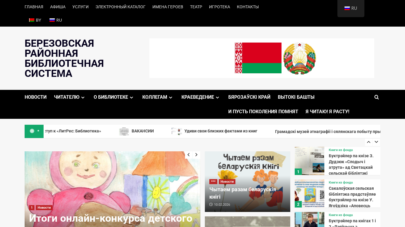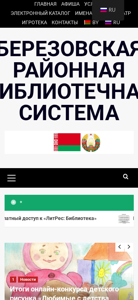 Сайт "Березовская районная библиотечная система" (bereza-cbs.by) является официальным онлайн-присутствием для библиотечной системы в Бресте, Беларусь. Название сайта отражает его цель и ключевые слова указывают на фокус на библиотечные услуги и ресурсы. На сайте наиболее часто встречающиеся слова включают "работы", "библиотека", "электронная почта", "Брест", "новости" и "адрес". Сайт предлагает различные услуги, среди которых электронный каталог, детский театр и общественный доступ к юридической информации. Посетители могут найти информацию о правилах библиотеки, детских мероприятиях и предстоящих конкурсах для детей на лучшее произведение искусства. Сайт также включает раздел, посвященный взятию книг из коллекции библиотеки, а также информацию о структуре библиотеки, графике работы и контактной информации. Кроме того, сайт предлагает ресурсы для общественных центров юридической информации.