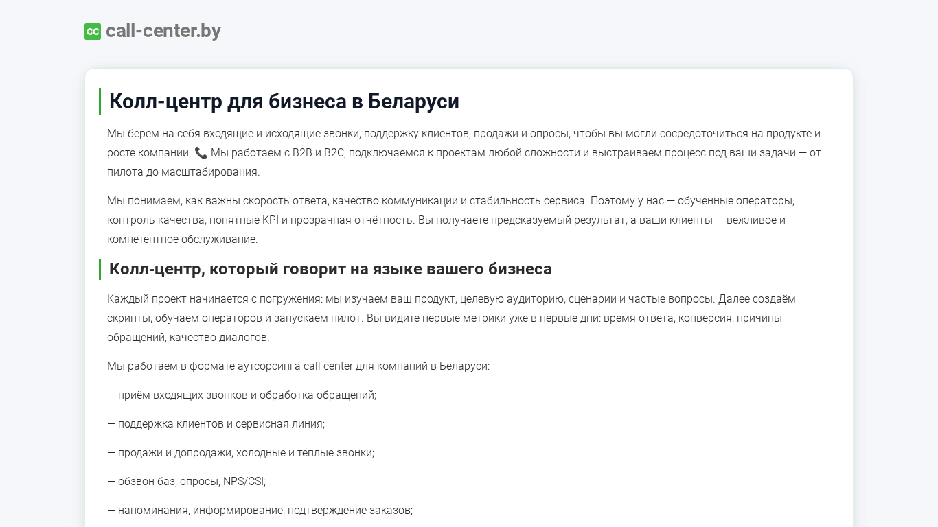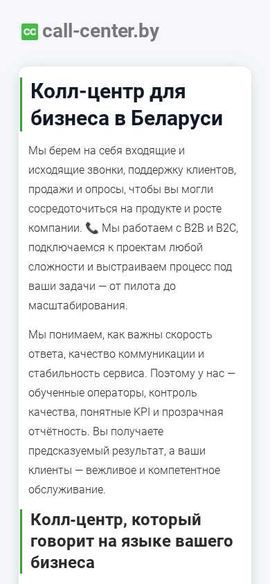 | Название / Заголовок | call-center.by — колл-центр для бизнеса в Беларуси |