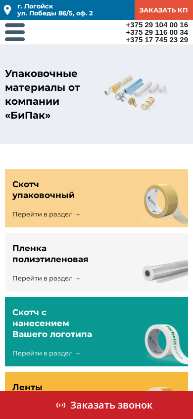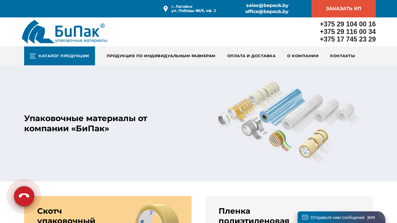 | SEO-описание | Оптовая продажа упаковочных материалов от компании «БиПак» по Минску и РБ. Лучшие цены в стране. Изготовление по индивидуальным размерам. Доставка. Звоните сейчас ➜ ☎️ +375 29 104 00 16 |