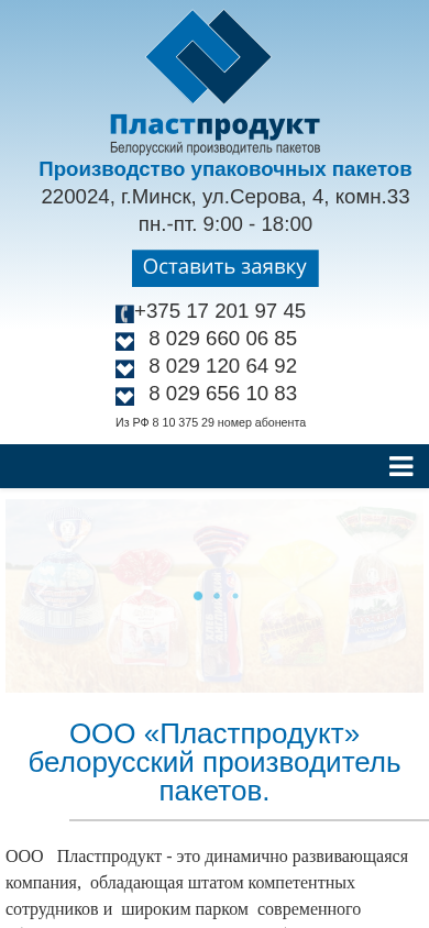 Название / ЗаголовокООО «Пластпродукт» производитель пакетов в Беларуси