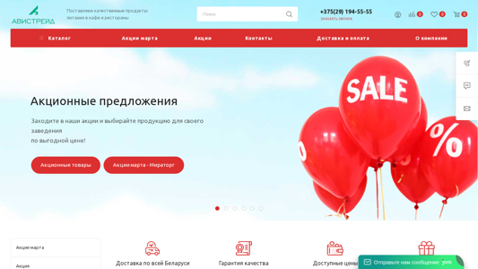 | AI-анализ | --- The website is an online store for wholesale food products in Belarus, catering to restaurants, cafes, fast food establishments. It offers a wide range of items including meat, fish, sausages, produce, condiments, and baked goods. Sections include prepared foods such as sauces and bakery items, vegetable oils and fats, meat and poultry, canned goods, and dairy products. The store also sells various types of fish and seafood. A section for Asian cuisine, specifically sushi and pan-Asian dishes, is also available. The site features various promotions and discounts, with a dedicated section for March promotions. Contact information is provided for delivery and payment inquiries. The company's registration and business hours are also indicated. |