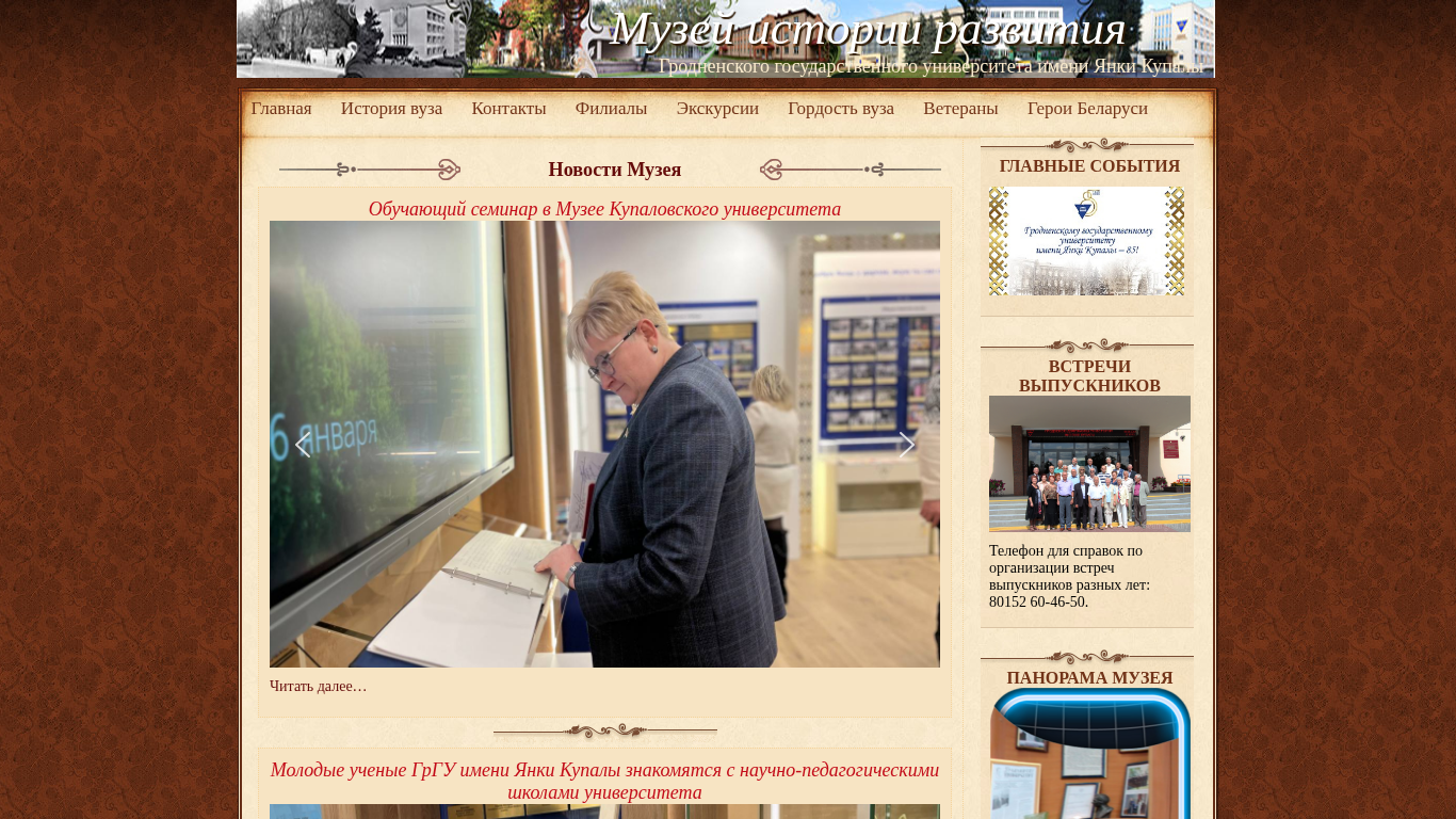 | SEO-описание | Музей истории развития ГрГУ имени Янки Купалы. Гродненского государственного университета имени Янки Купалы |