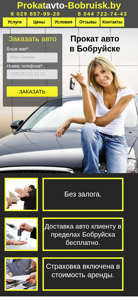 | SEO-описание | Автопрокат в Бобруйске предлагает в прокат автомобили всех классов — компактные и экономичные, подходящие для ежедневных нужд; необходимые в загородных поездках внедорожники; а так же автомобили класса стандарт и премиум, необходимые деловым людям для бизнес-встреч. |