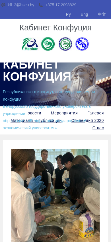 The portal 'Кабинет конфуция' (Confucius Cabinet) is a website of the Confucius Institute at the Belarusian State Economic University (BSEU). The site provides news, events, and publications related to the institute's activities, including master-classes, educational programs, and competitions. Key topics include Chinese language, culture, and events. The site is available in Russian, English, and Chinese languages. Some of the recent posts include a report on a master-class for making Chinese dumplings and news about the participation of BSEU students in a Chinese language competition.