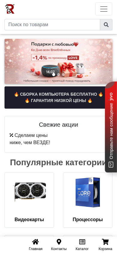 Этот онлайн-ресурс — R-Tech, компьютерный магазин, расположенный в Республике Беларусь. Сайт предлагает широкий ассортимент компьютеров, ноутбуков, офисного оборудования и электроники по доступным ценам. Покупатели могут найти контакты, новости, отзывы и информацию о текущих акциях. Сайт включает в себя популярные категории, такие как видеокарты, процессоры, мониторы и рекомендованные товары. Магазин предлагает бесплатную услугу "соберите свой компьютер" и гарантирует низкие цены. Каталог содержит различные товары, включая бытовую технику, инструменты для дома и игрушки для детей. Адрес сайта — r-tech.by, а он зарегистрирован под ООО "РЕДТЕХНИК" с УНП: 193655769.