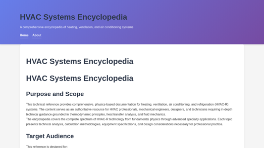 | AI-анализ | The web project "HVAC Systems Encyclopedia" is a comprehensive technical reference dedicated to heating, ventilation, air conditioning, and refrigeration (HVAC-R) systems. The content covers fundamentals, design calculations, equipment selection, controls, codes and standards for HVAC professionals and engineers. The website's description emphasizes its physics-based documentation, assuming professional-level technical knowledge including thermodynamics, heat transfer, fluid mechanics, and psychrometrics. Major topic categories include HVAC fundamentals, heat transfer, and control systems. The encyclopedia aims to serve as an authoritative resource for mechanical engineers, HVAC designers, controls engineers, project managers, service technicians, energy analysts, and commissioning agents. The domain is registered under .BY for Belarus. |