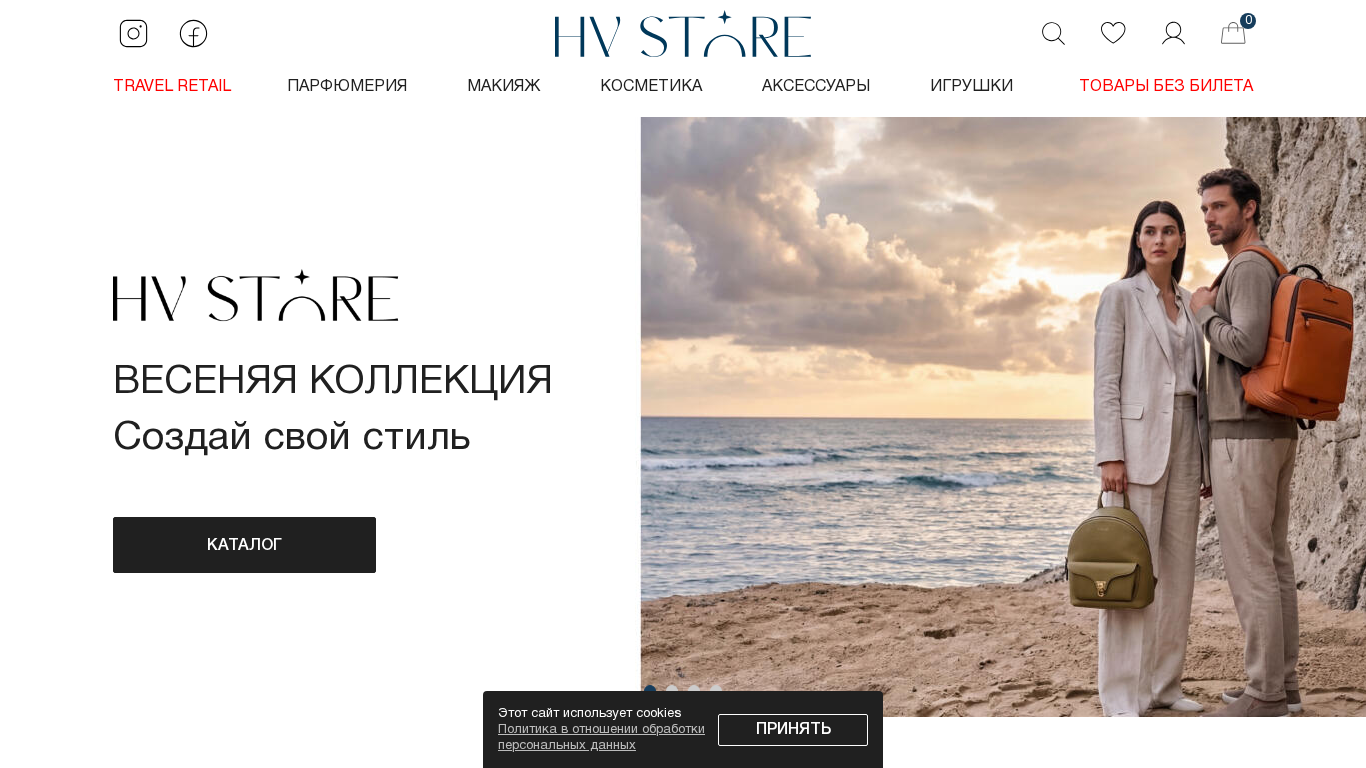 | SEO-описание | HV STORE - первый онлайн магазин Duty Free & Travel Retail товаров с доставкой в центр Минска. Оригинальная парфюмерия, косметика, аксессуары и подарочные наборы от мировых брендов. Выгодные цены. Широкий ассортимент. Онлайн-заказ. |