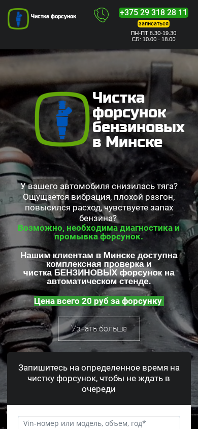 | SEO-описание | Ультразвуковая чистка форсунок в Минске - промывка ультразвуком на стенде бензиновых форсунок топливной системы. Диагностика и проверка. Низкие цены от 22,5 рублей! Мы в центре Минска (Победителей, Тимирязева, Фрунзенский район)! |