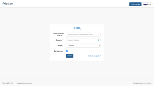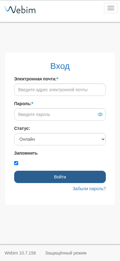 | SEO-описание | Вход в панель управления учётной записью сервиса Webim. |