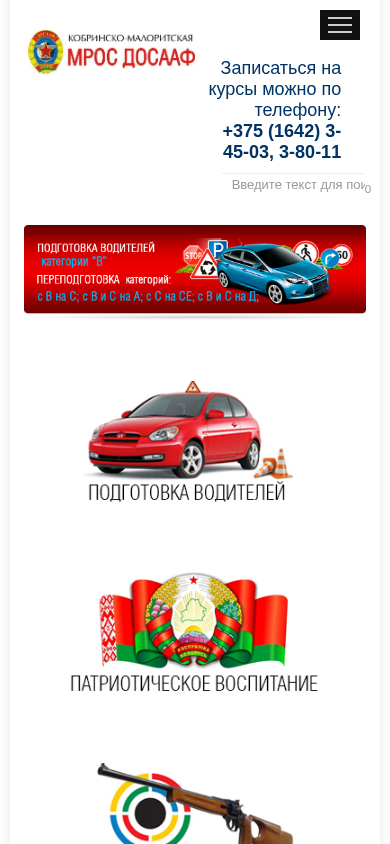 SEO-описаниеКобринско-Малоритское МРОС ДОСААФ. Автошкола в Кобрине - подготовка водителей категорий А, В, С, D, СЕ