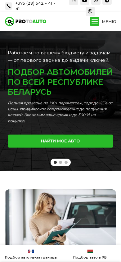 The web project "Protoauto.by" is a professional car selection service based in Minsk, Belarus, and operating nationwide as well as abroad. The platform offers a thorough check of over 100 parameters, a 15% discount on car prices, and legal support until the keys are handed over. The service imports cars from the USA, Europe, and Korea, allowing clients to save up to 40% compared to the local market. Protoauto.by also provides a detailed assessment of the vehicle, including computer diagnostics, checks for theft or damage history, and hidden defects. Clients can receive a free consultation from an expert to determine the real cost of the car and receive a personalized quote within five minutes. The service offers various tariffs for one-time, daily, under the key, and sales-related car purchases. Protoauto.by specializes in professional car selection