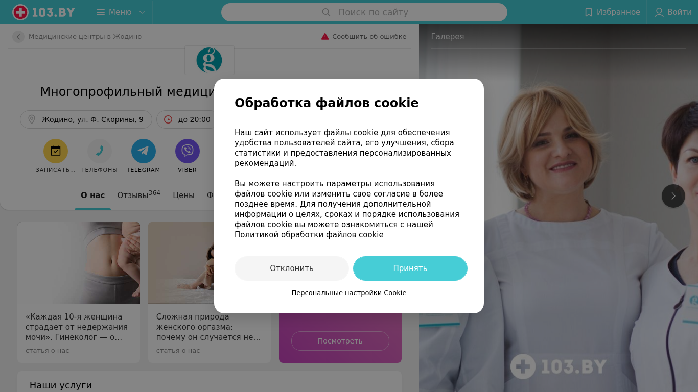 | SEO-описание | Многопрофильный медицинский центр Гармония Жодино ул. Ф. Скорины 9 – телефоны, время работы, отзывы и схема проезда в каталоге медицинского портала 103.by. |