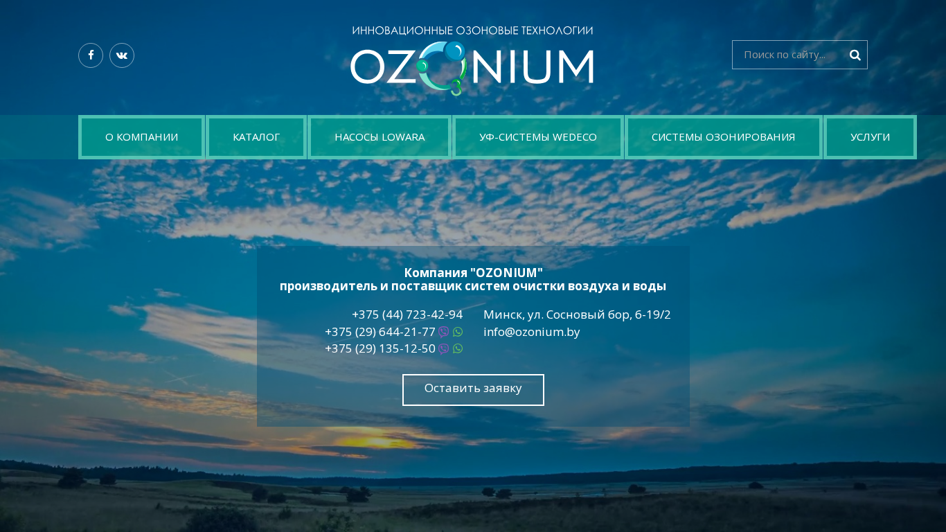 The portal Ozonium is dedicated to innovative ozone technologies. The company's catalog includes various ozone generators, such as Lowara UF systems, WeDeco, EcoCirc, and own production. Products cater to both industrial and domestic applications, including water treatment systems, air purifiers, and ozone generators for food, personal items, and vehicles. The company offers systems for water purification from wells, industrial wastewater treatment, and ozonation in milk production, poultry farms, and greenhouses. Additionally, Ozonium provides ozone treatment for cooling and heating systems, grains, feeds, medicinal herbs, and meat and fruit processing. The website also features information on the company, its participation in research, and contacts for inquiries.