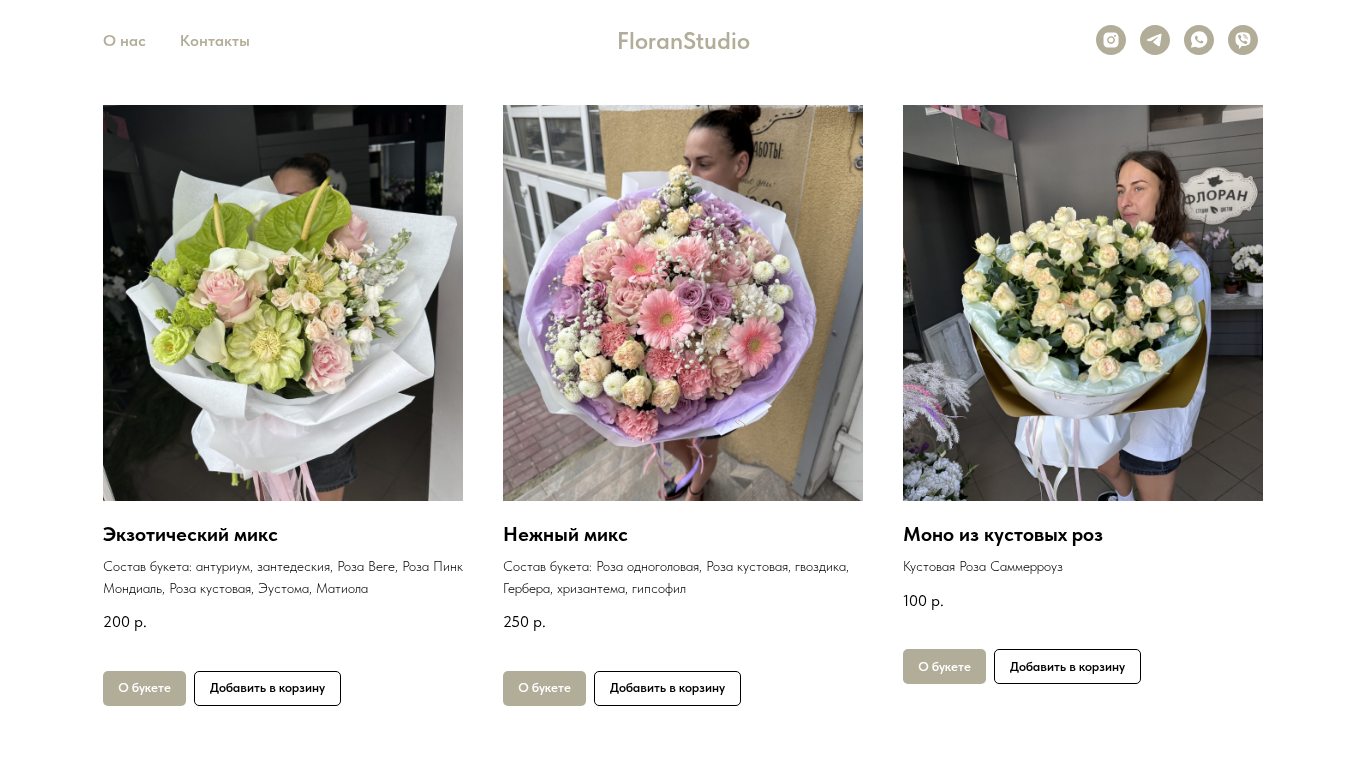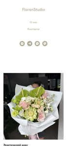 This website is an online flower shop in Grodno, Belarus, named FloranStudio. The title and description of the website indicate that they offer delivery of flowers, roses in particular, in Grodno. The top_words data shows that the most frequently used words on the site are "роза" (rose), "букета" (bouquet), "купить" (buy), and "доставка" (delivery). The site offers various types of bouquets and flowers for purchase, such as "Состав букета: антуриум, зантедеския, Роза Веге, Роза Пинк Мондиаль, Роза кустовая, Эустома, Матиола" (composition of the bouquet: antirrhinum, zantedeschia, Rose Veg, Rose Pink Mond