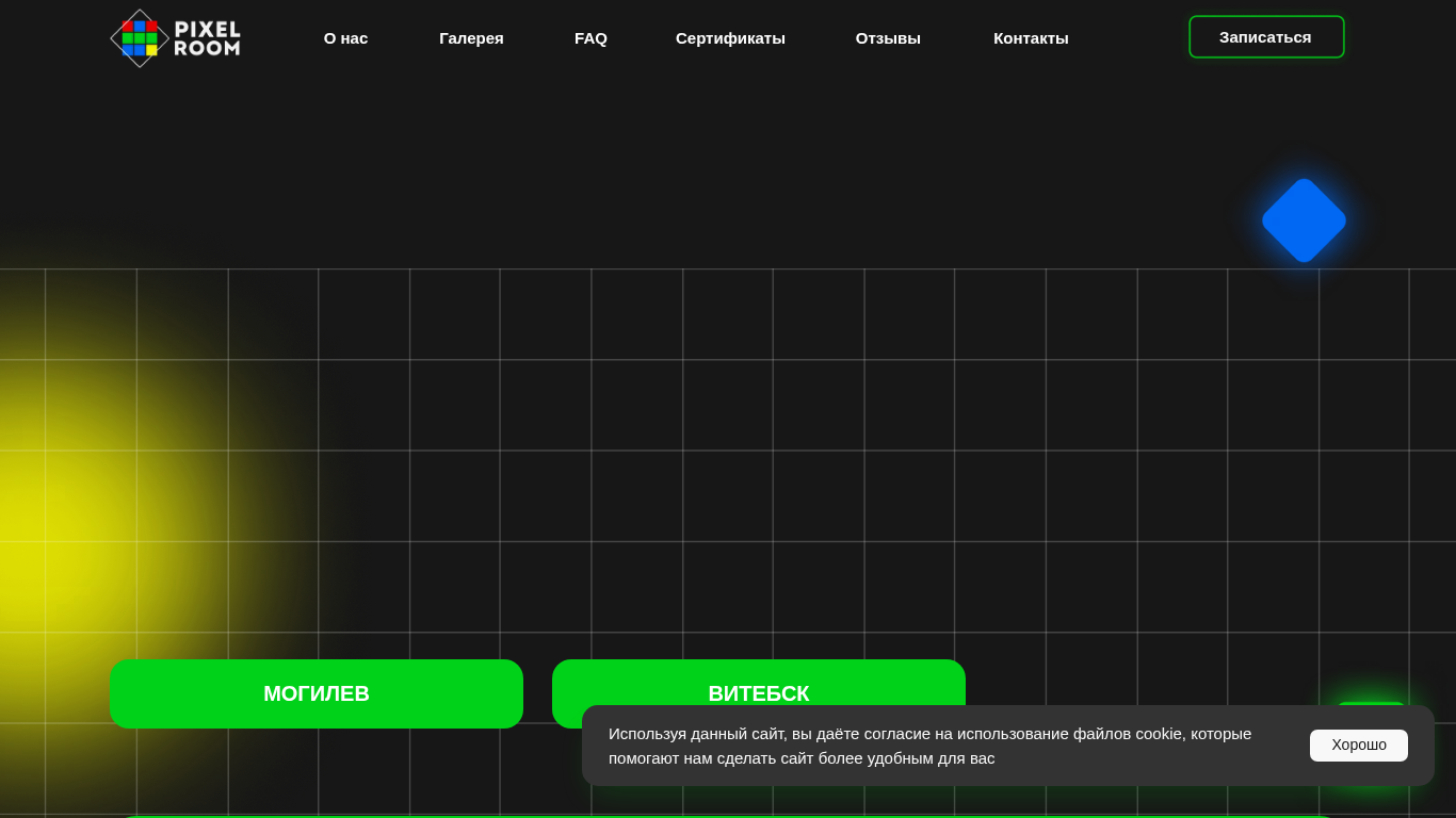 | SEO-описание | Ищете необычное место для развлечений в Могилеве или Витебске? Pixel Room – это интерактивная игровая комната с яркими светящимися плитами, которые реагируют на шаги! Подходит для детских дней рождения, корпоративов и дружеских встреч. Запись на сайте |