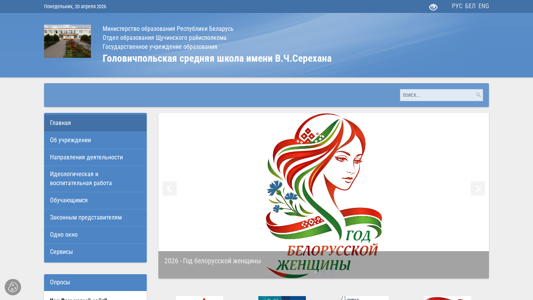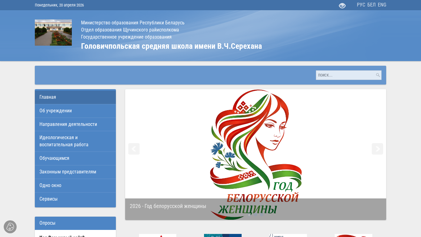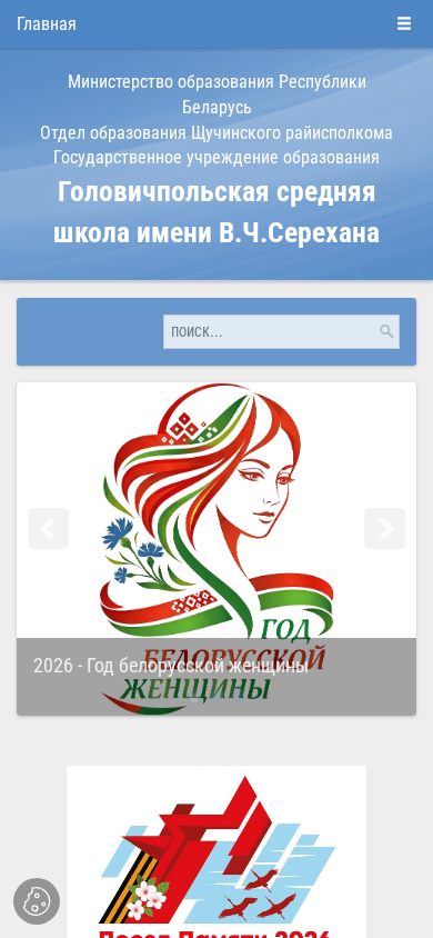 | AI-анализ | --- The portal golovich.schuchin-edu.by is the website of Gоловичпольская средняя школа имени В.Ч.Серехана, located in the Щучинский район of Belarus. The school is currently promoting several projects, including 'Беларусь помнит. Помним каждого' and 'Школа - территория здоровья', both of which are part of the 2026 Year of the Belarusian Woman. The site features articles on various topics such as cybersecurity, a unity day for Belarusians and Russians, a dialogue with older students, and a seminar on museum project design. There is also information on news and events, including a search and rescue meeting and a republican contest for children on innovative projects to protect against cybercrime. Additionally, the site offers a |