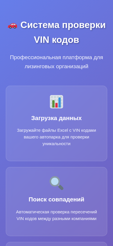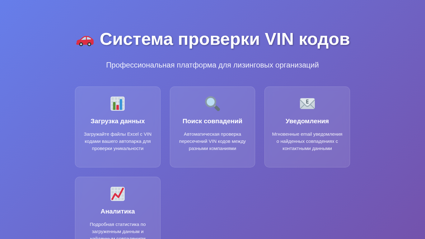 This website is a professional platform for leasing organizations in Belarus, providing a system for checking the uniqueness of VIN codes from their vehicle inventories against a database of other companies. Users can upload Excel files containing VIN codes from their auto parks for automatic comparison, and receive notifications of any matching codes and associated contact information via email. The system offers detailed analytics on uploaded data and identified matches, and requires companies to log in with their accounts to access the features. The website is operated by the Leasing Association of Belarus and was developed by FreeCoder.by.