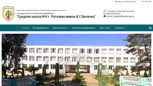 | Название / Заголовок | Средняя школа №4 г. Рогачёва имени В.С.Величко |