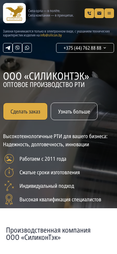 | SEO-описание | Производство РТИ из силикона и промышленных уплотнений оптом. ★ Работаем с 2011 года ★ По образцу на заказ ☎️ +375 (44) 707 44 55. |