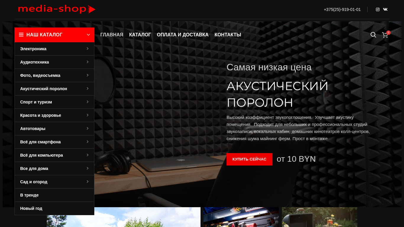 | AI-анализ | Media Shop is an online electronics store offering a wide range of products for recording studios and video production, along with accessories for popular Apple and Android devices. The catalog features projectors, gaming consoles, smartwatches and fitness trackers, network equipment, TV boxes, network filters, security cameras, memory cards, batteries, audio technology, headphones, microphones, studio equipment, photo and video equipment, lighting, stands and holders, reflectors, stabilizers and tripods, mice and covers, bundles for video blogging, action cameras, studio and stage equipment, acoustic foam, decorative acoustic panels, sound-absorbing panels, bass traps, and clips for foam. Additionally, there are items for sports and tourism, including flashlights, camping stoves, portable stoves, tents, portable mats, camping furniture and dishes, touring knives, mult |