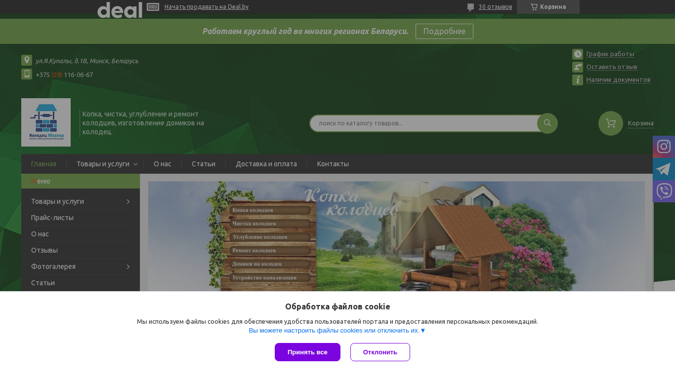 | SEO-описание | Копка, чистка, углубление и ремонт колодцев, монтаж канализации, изготовление домиков на колодец, разведывательное бурение, бурение скважин, колодецмастер |