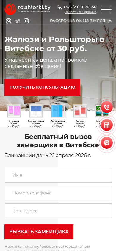 SEO-описаниеЖалюзи и Рольшторы в Витебске КУПИТЬ по Честной ЦЕНЕ В РАССРОЧКУ без %. ⭐ Бесплатный замер ✔ Онлайн калькулятор ✔ Рассрочка 💥 Доставка = 0 BYN. 🔥 Гарантия 10 лет. ✔ Быстрая установка ✔ Оплата по факту установки!