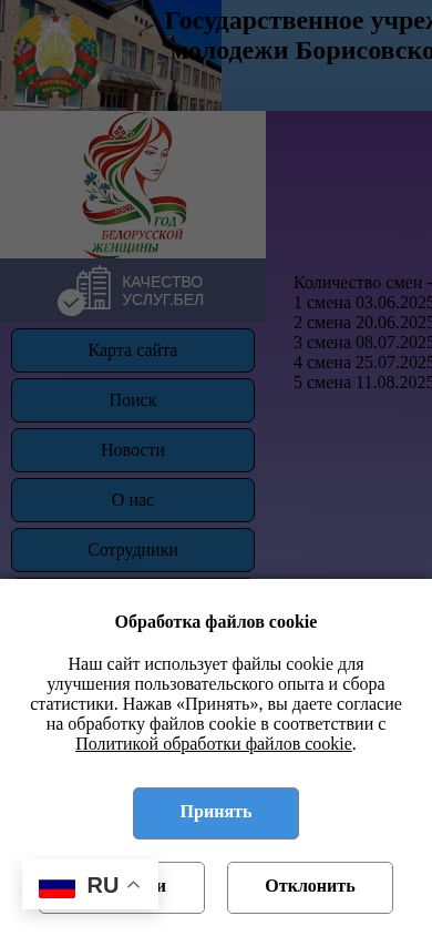 The web project is for the official website of the educational institution "Center for the Development of Children and Youth of Borisovsky District" and its boarding school "Brodovka". The site provides information about the camp's news, staff, daily routine, rules of stay, educational programs, and various social projects. It also offers resources for parents on child protection in the family and prevention of domestic violence. Additionally, the site includes information on legal issues, mental health services, and emergency help. The site has sections on educational programs such as "School of Active Citizenship" and "List of Pages of History," as well as information on various regional and republican activities. The site includes a map of the facility and contact information for the camp.