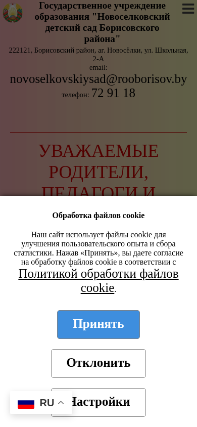 | Название / Заголовок | ГУО "Новосёлковский детский сад Борисовского района" - Официальный сайт |