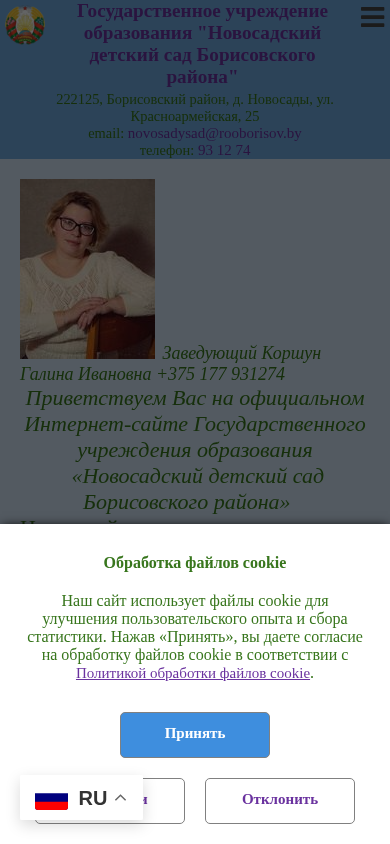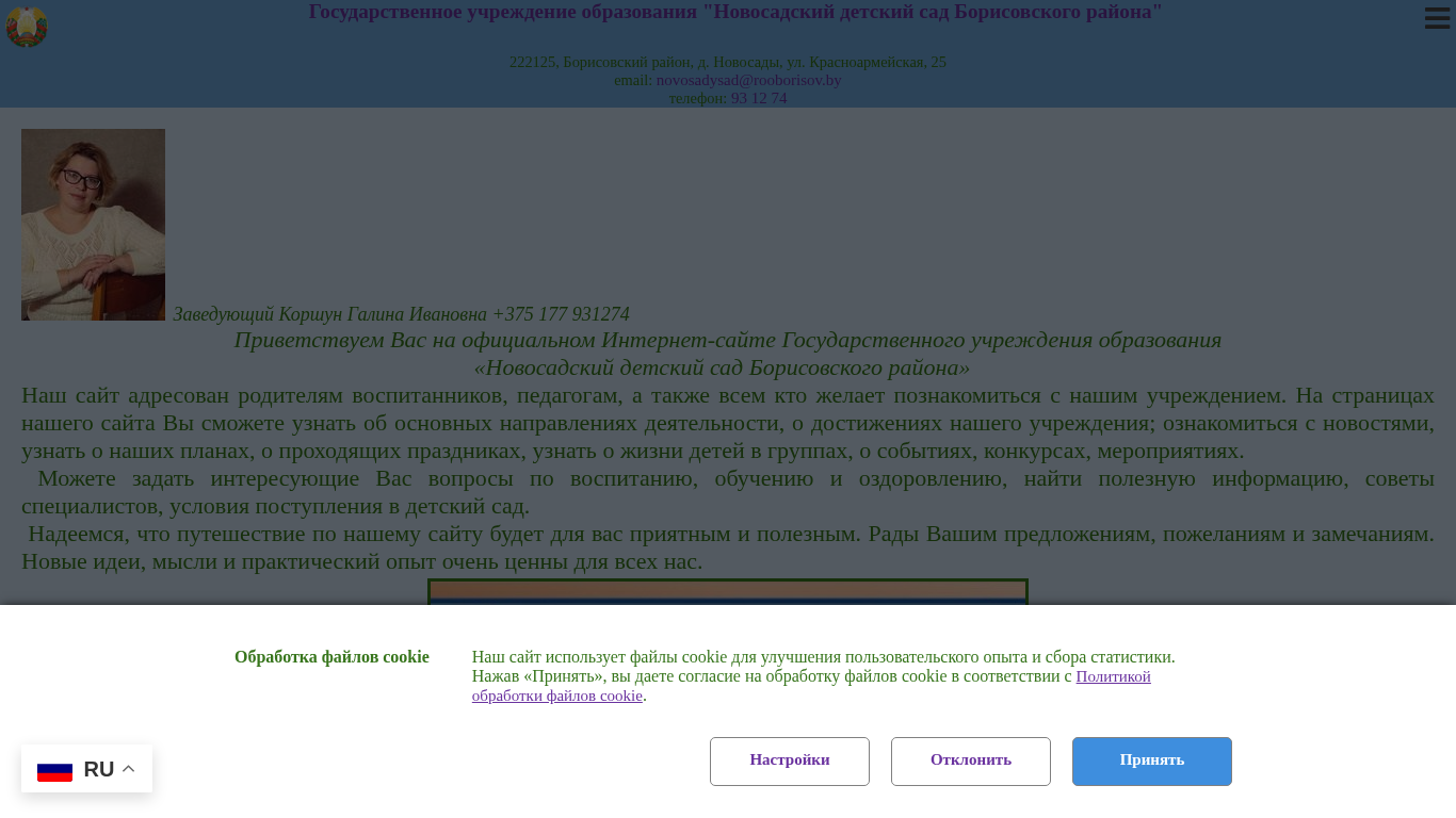 | Название / Заголовок | ГУО "Новосадский детский сад Борисовского района" - Официальный сайт |