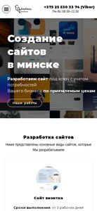| AI-анализ | Этот онлайн-ресурс является компанией по разработке веб-сайтов, базирующейся в Минске, Беларусь. Они предлагают услуги по созданию сайтов начиная с 100 BYN. Сайт содержит информацию о различных типах сайтов, которые они разрабатывают, включая одностраничные сайты, сайты-визитки, корпоративные сайты, каталоговые сайты, интернет-магазины, контекстную рекламу и блоги. На сайте также предоставлены контактные данные для обращений, с указанием номера телефона и электронной почты. Компания предлагает быстрое выполнение проектов, где одностраничный сайт занимает всего 3 рабочих дня, а сайт-визитка — 5 рабочих дней, среди прочего. Примеры их работы демонстрируются на сайте. |