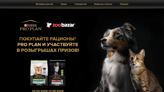 | Название / Заголовок | Покупайте рационы* PRO PLAN и Участвуйте в розыгрышах призов! |