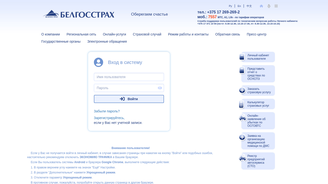Белгосстрах. Личный кабинет.