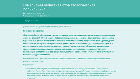 | Название / Заголовок | Гомельская областная стоматологическая поликлиника. Заказ талонов |