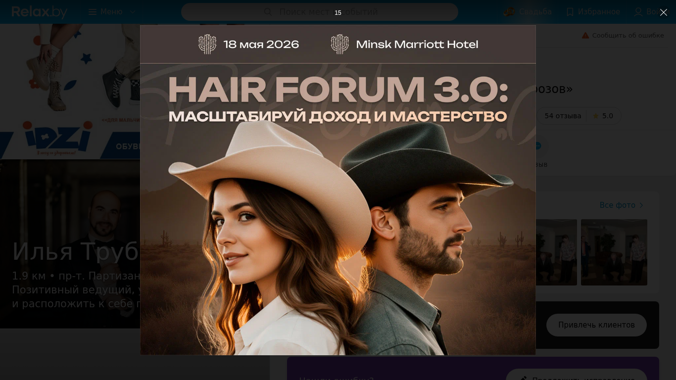 | AI-анализ | The web project "Morozov Show" is a website dedicated to the services of the event host, Alexander Morozov, based in Minsk, Belarus. The website provides information about the host, his reviews, prices, and photos of various events such as weddings, corporate parties, and graduation ceremonies. The website includes a program description, contacts, and a photo gallery. The host, Alexander Morozov, is known for his contemporary approach to events, which includes a young and energetic demeanor, good sense of humor, and a repertoire of jokes and contests suitable for various types of events and age groups. The website offers organizational services for events such as birthdays, corporate functions, New Year's celebrations, weddings, and jubilees, as well as sound, lighting, and show programming. The website also features a section for frequently viewed hosts, including |