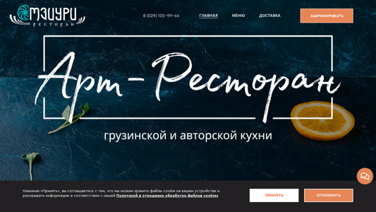 | AI-анализ | --- The portal mziuri.by is an art restaurant specializing in Georgian and author's cuisine in Minsk, Belarus. The website provides information about the restaurant, including its phone number (8 029 105-99-66), menu, delivery and reservation options. The restaurant's name, MZIURI, symbolizes the sun and the joyful and memorable moments it brings to our lives. According to the description, the chef, Gevorg Davtyan, compares cooking to painting, where he not only uses his skills but also creates new images and techniques. Born into a cooking dynasty and trained in European capitals, Davtyan has developed a professional and creative culinary career, offering unforgettable impressions with his dishes. The menu includes a variety of cold appetizers, salads, soups, hot dishes, grills |
