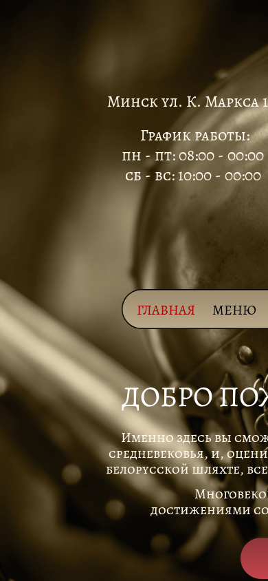 | SEO-описание | Кафе белорусской кухни в центре Минска, К. Маркса 19, тел.8 029 177 56 90 Именно здесь вы сможете попробовать блюда старобелорусской кухни в лучших традициях средневековья, и, оценив их незабываемый вкус, почувствовать причастность к благородной белорусской шляхте, всегда вызывавшей восхищение умением отдыхать и принимать гостей. |