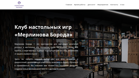 | SEO-описание | Клуб настольных игр Мерлинова Борода в Минске. Рады видеть всех и каждого. Большой выбор игр любой сложности, где Вам всегда подскажут и помогут с правилами. |