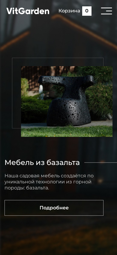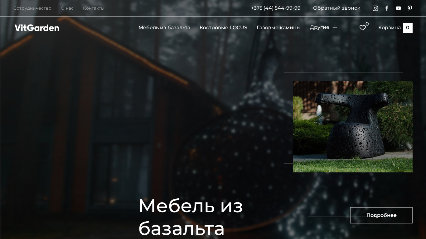 | SEO-описание | VitGarden – эксклюзивный дистрибьютор мебели из базальта на территории СНГ и других уникальных решений для обустройства участка. |