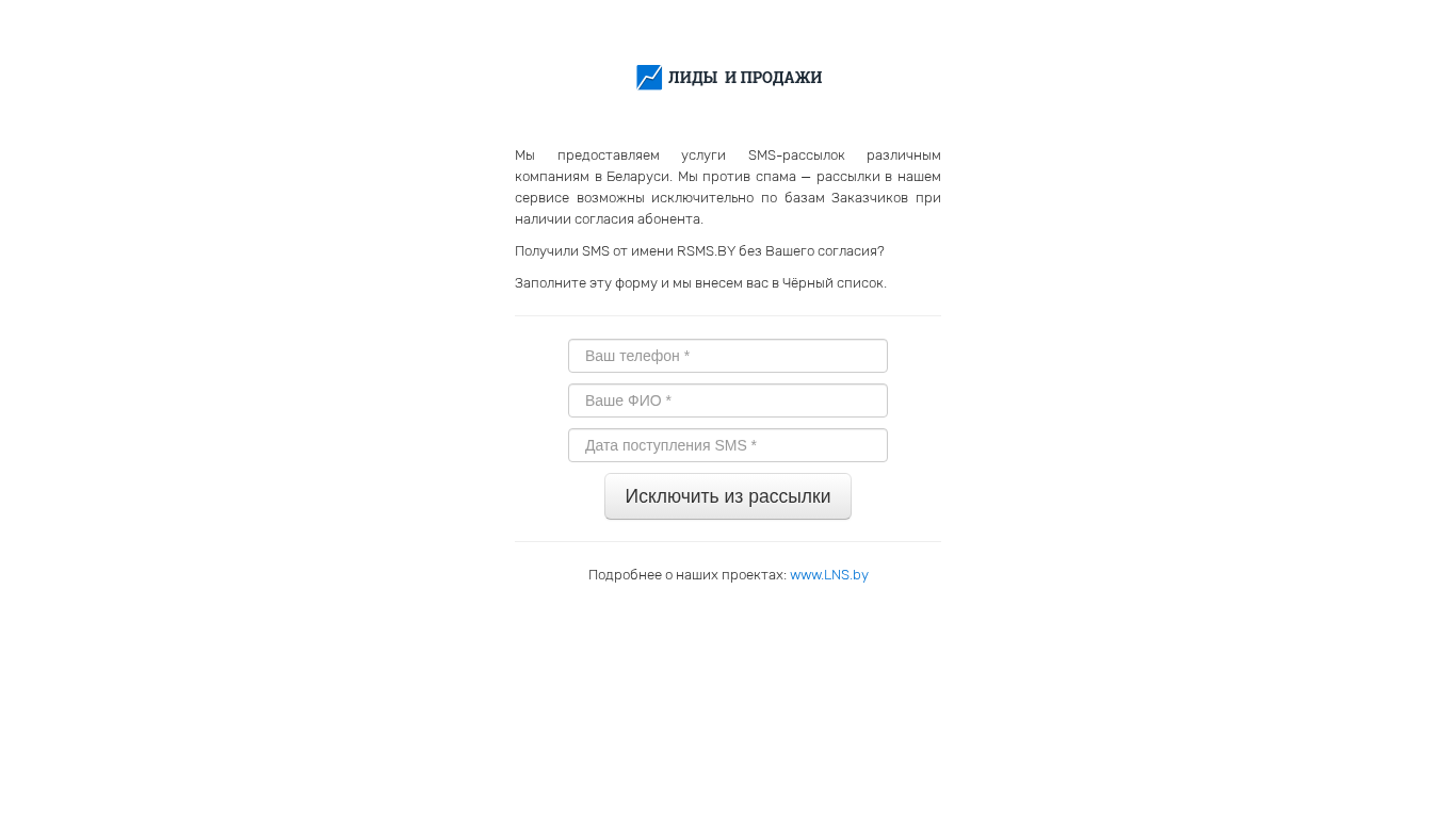 | Название / Заголовок | RSMS.BY — отключить рассылку |