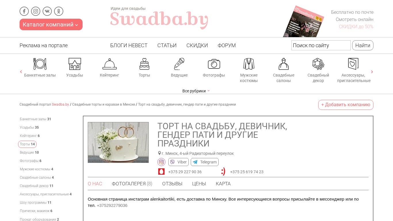 Адресдругие праздники, Торт на свадьбу, девичник, гендер пати и другие праздники, г. Минск, 4-ый Радиаторный переулок, Viber, Telegram, +375