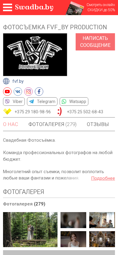 | SEO-описание | Фотосъемка FvF_BY Production - свадебная фотосъемка в Минске с портфолио, отзывами и ценами. Адреса, контакты и отзывы. |